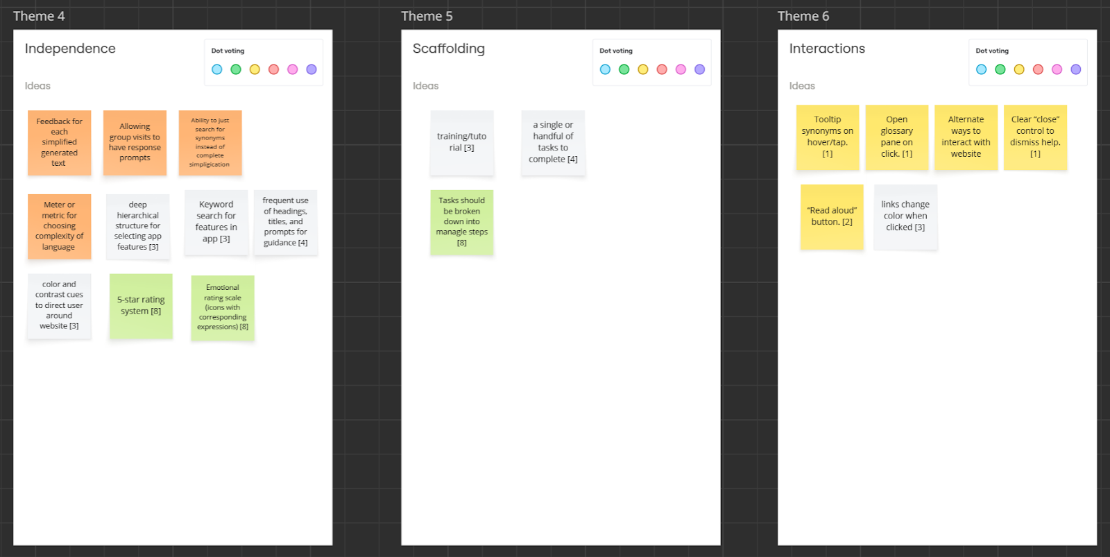 In our affinity diagram, we organized these needs into six broad categories:
