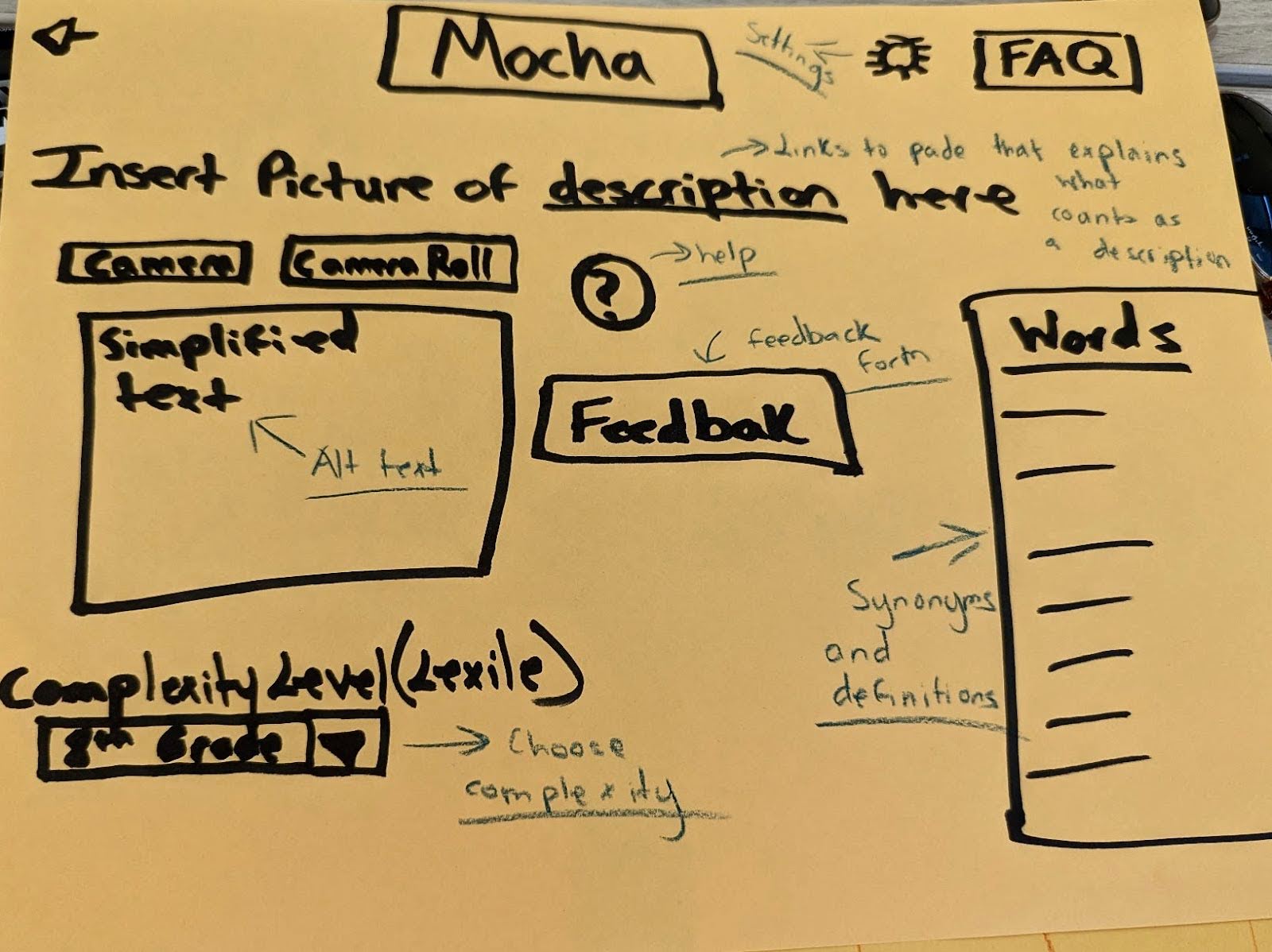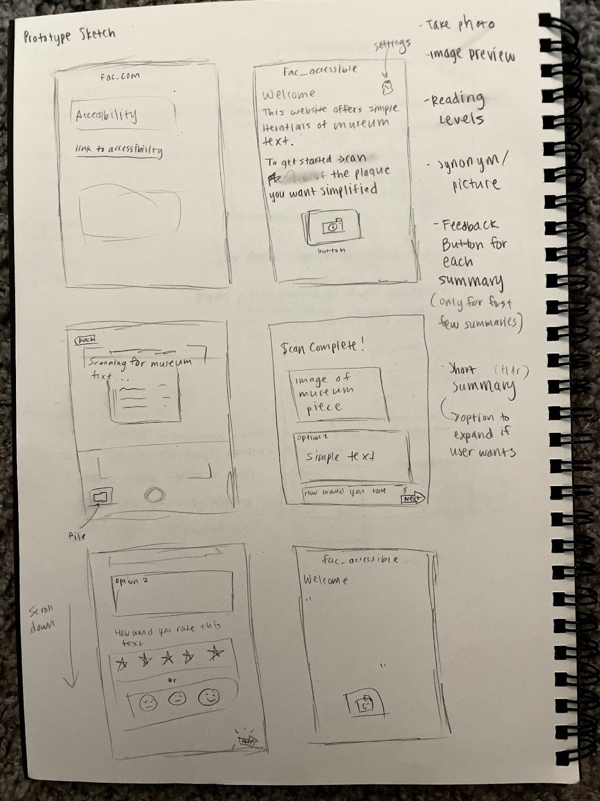Based on our affinity diagram, each member of our team drafted an initial sketch of core features in our application.